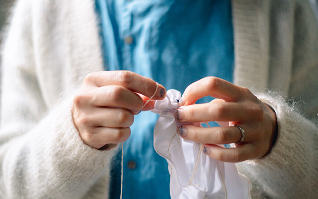 縫いから染めまで、手作業で